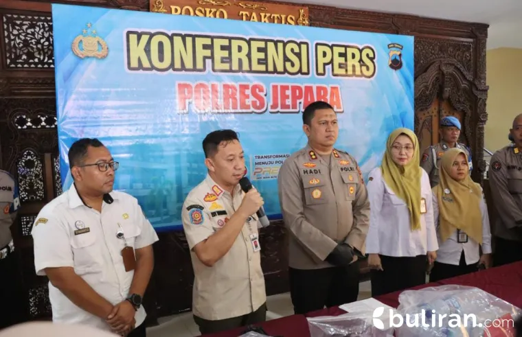 Konferensi Pers: Penetapan tersangka diumumkan langsung oleh Kapolres Jepara, AKBP Hadi Kristanto, di Mapolres Jepara, Rabu (11/2/2026).